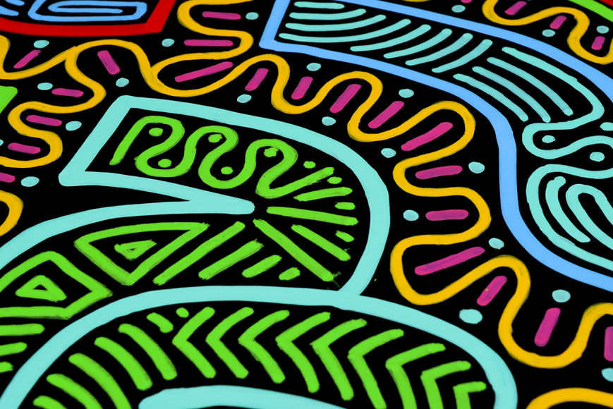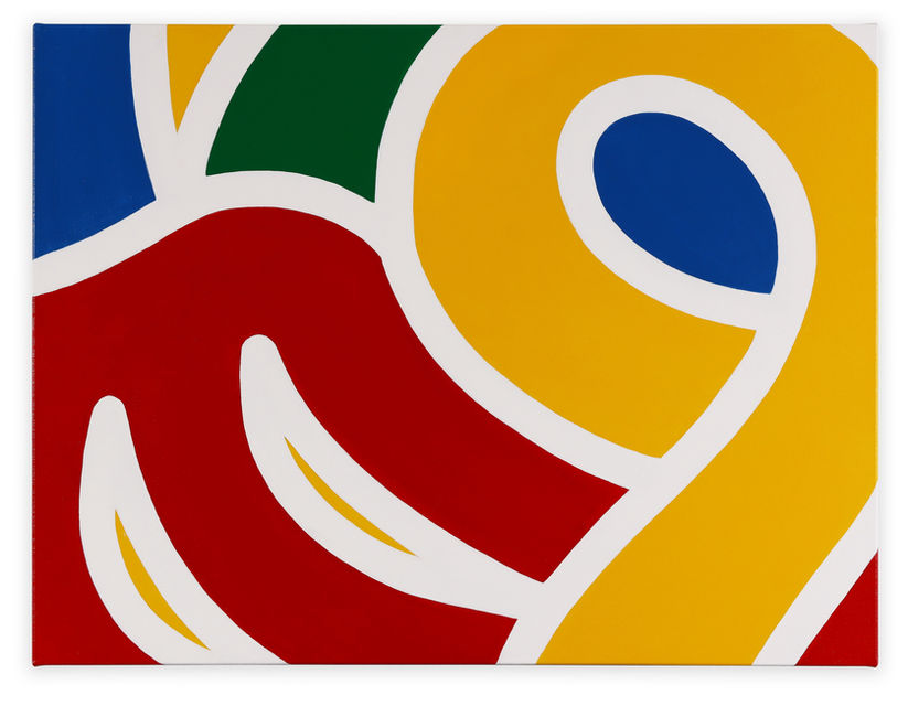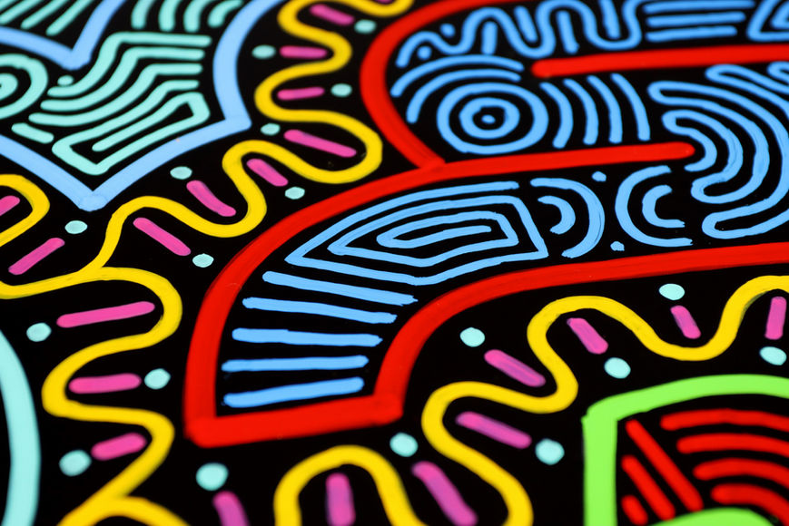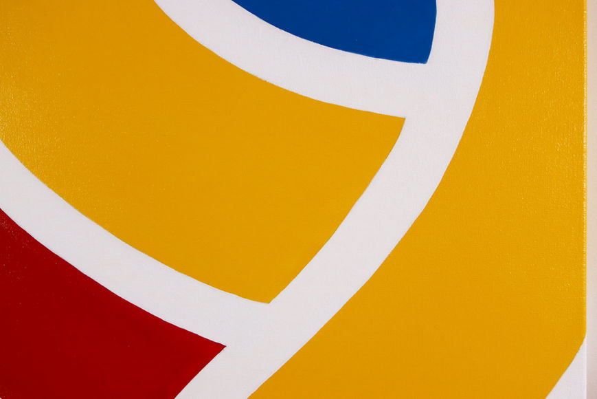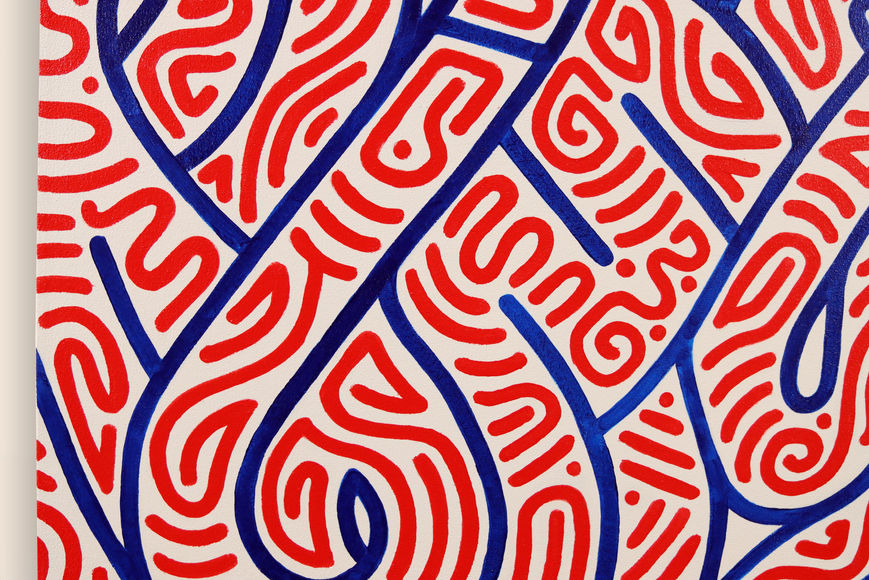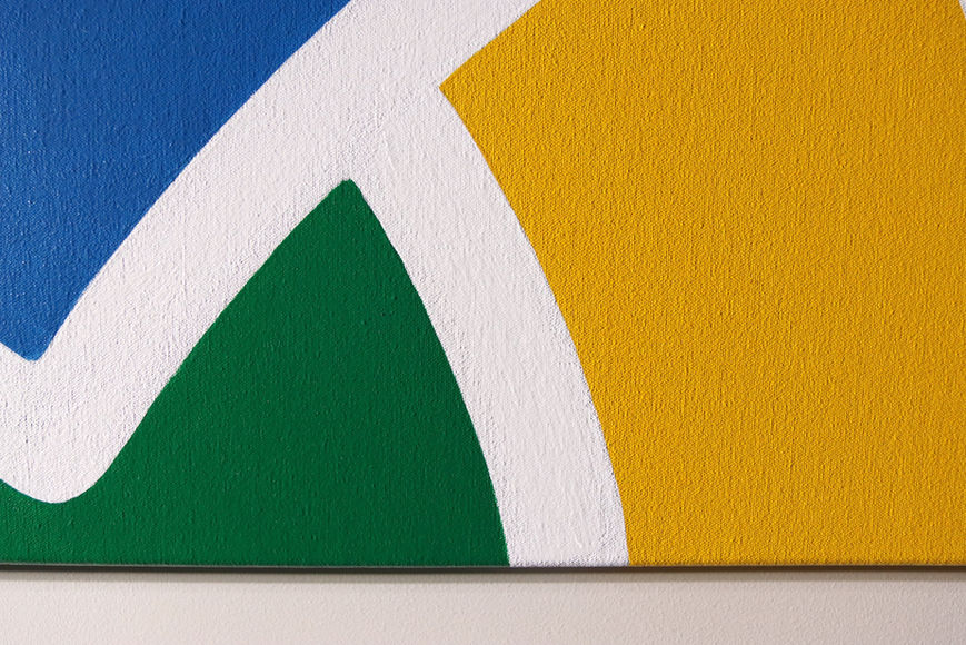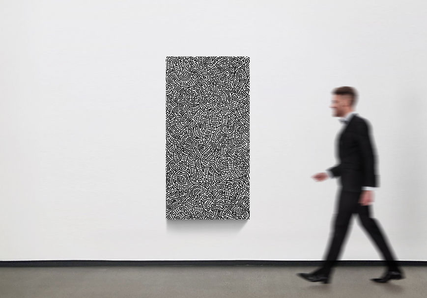 Acrylic and archival alcohol paint on canvas bonded across 35 suspended aluminum composite panels.